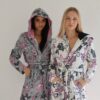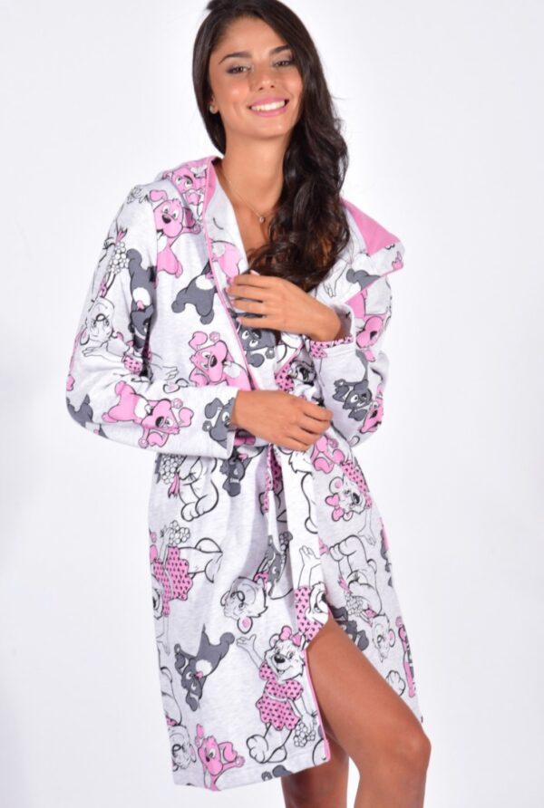 החלוק כולל כובע וחגורת קשירה במותניים.