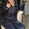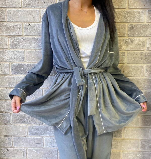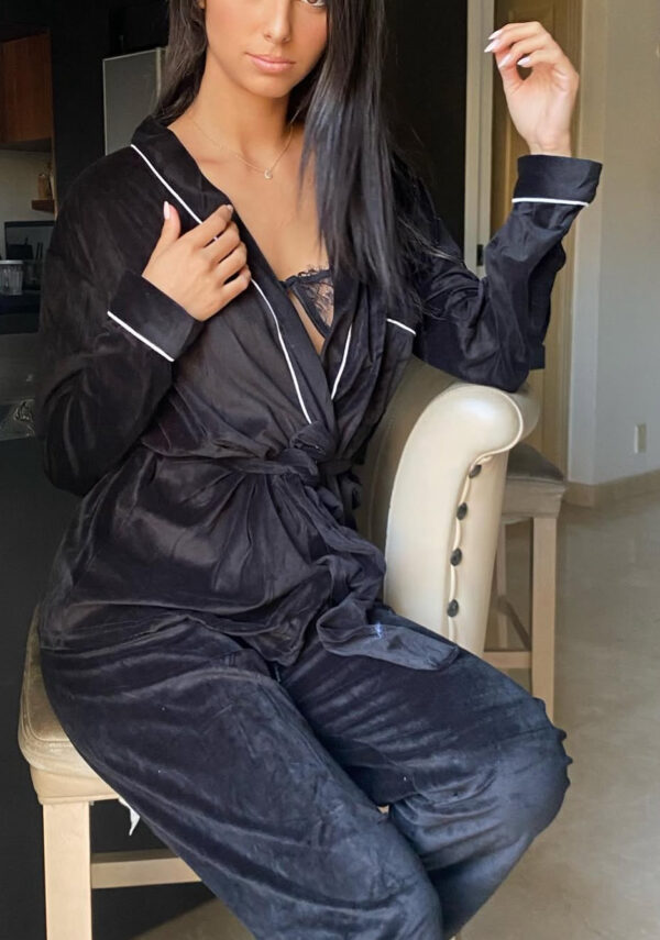 בד קטיפה חליפה מומלצת הדוגמנית לובשת m