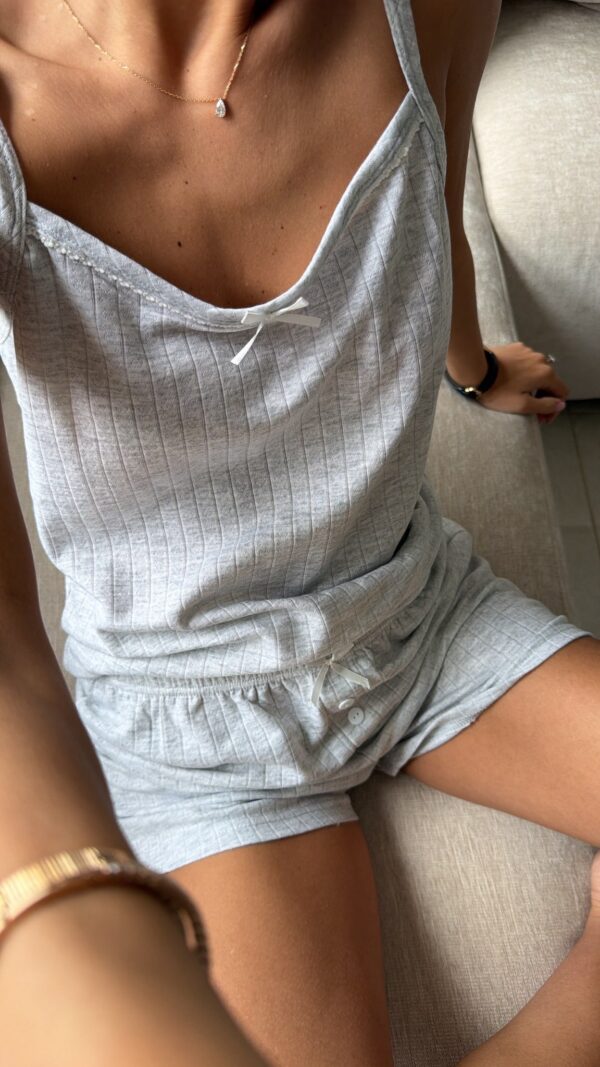 בד טקסטורה של לבבות קטנים שורט עם גופייה. רך במיוחד
