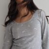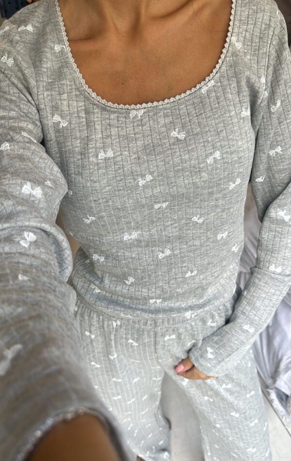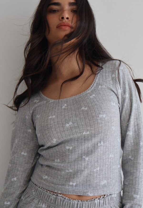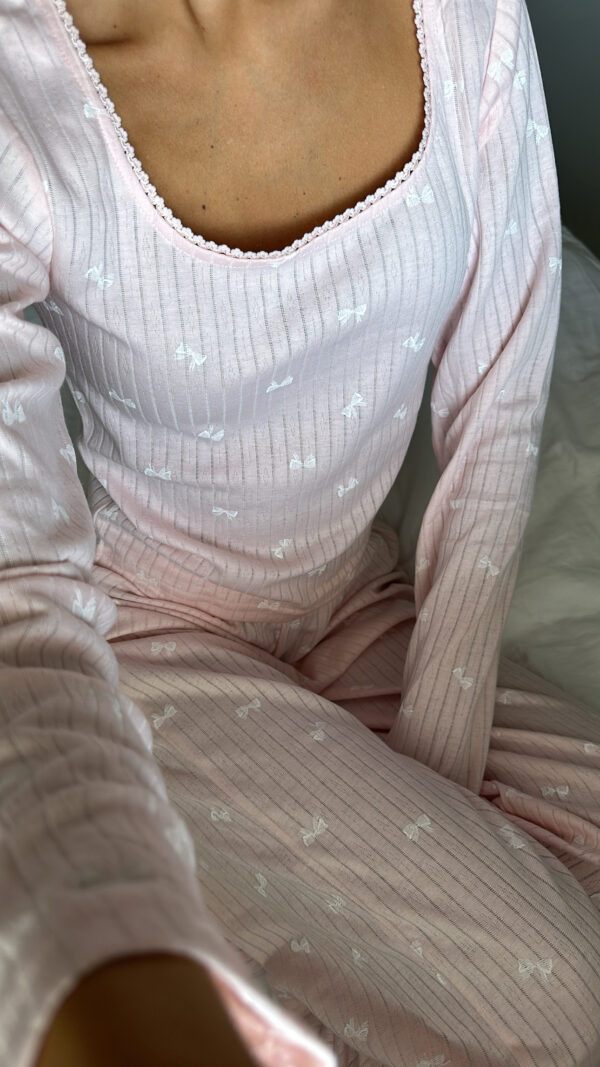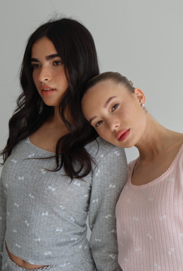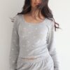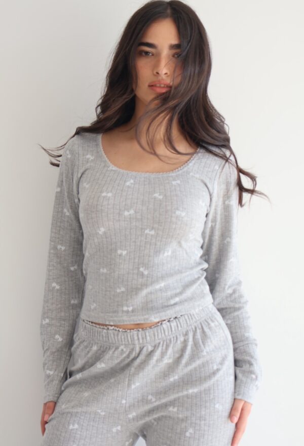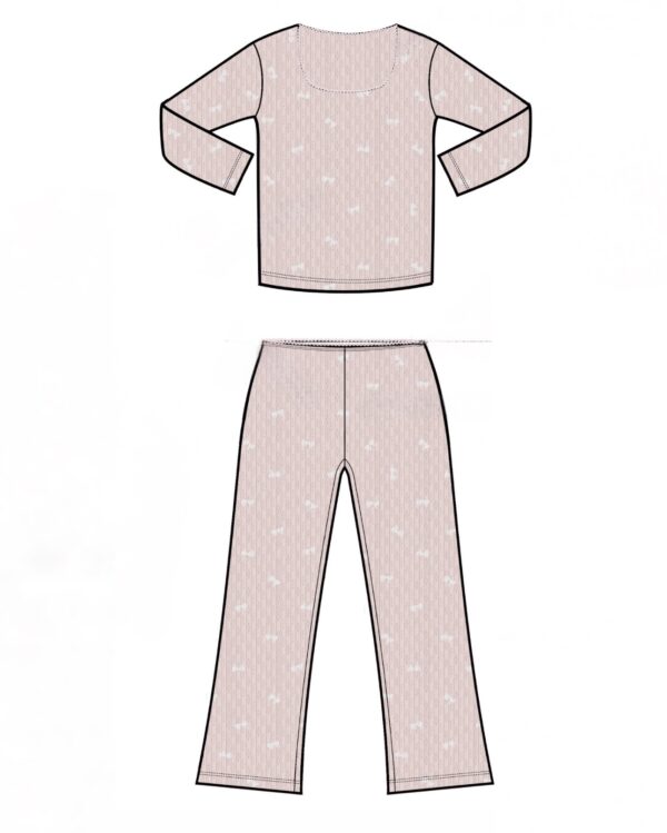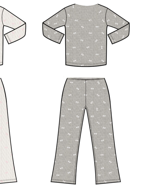 פיג׳מה מכנס מתרחב. חולצה קצרה מהרגיל גזרה צמודה יותר.