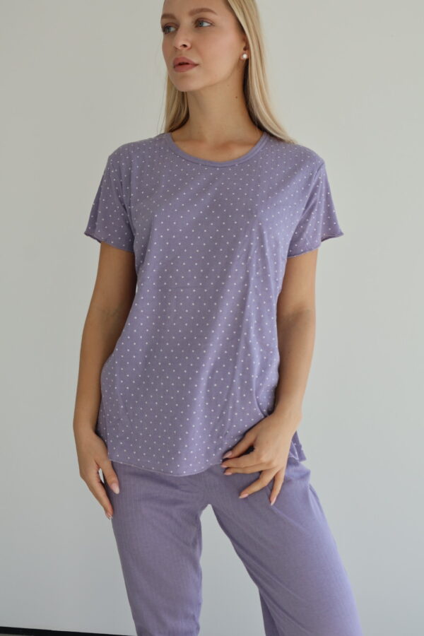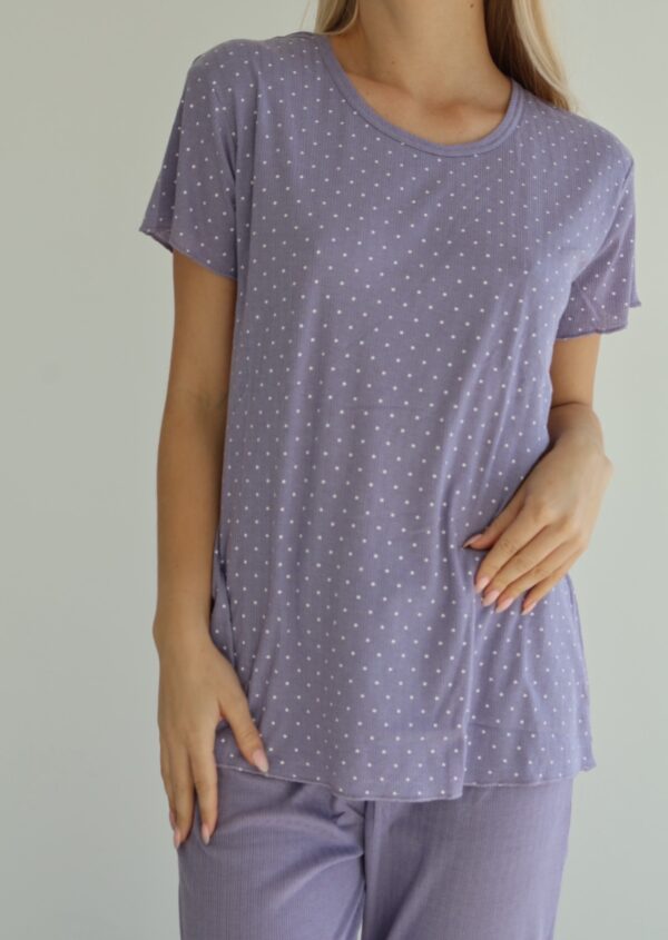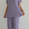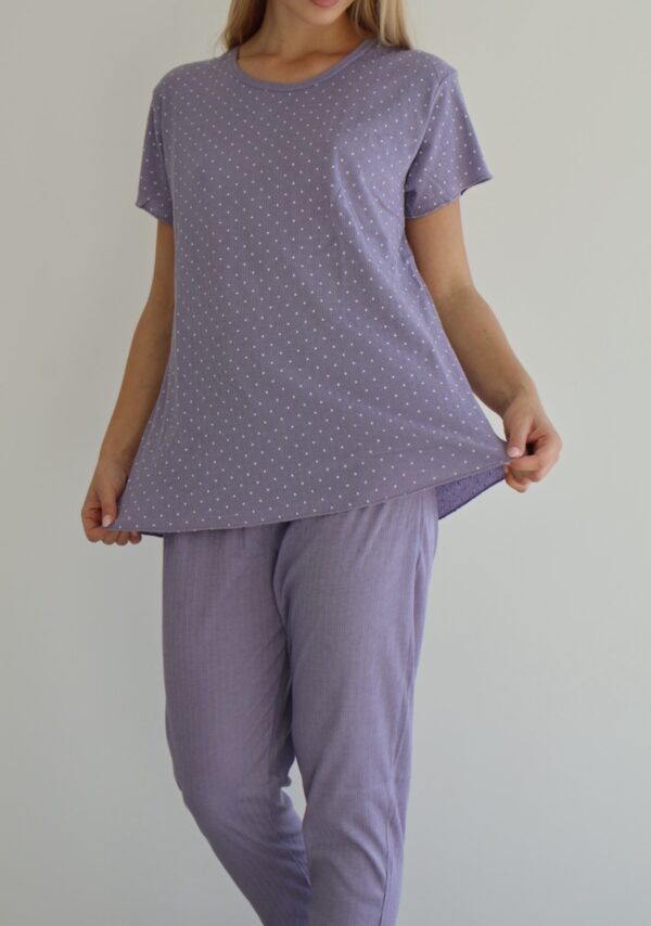 פיג'מה ג'קארד מכנס ארוך שרוול קצר.