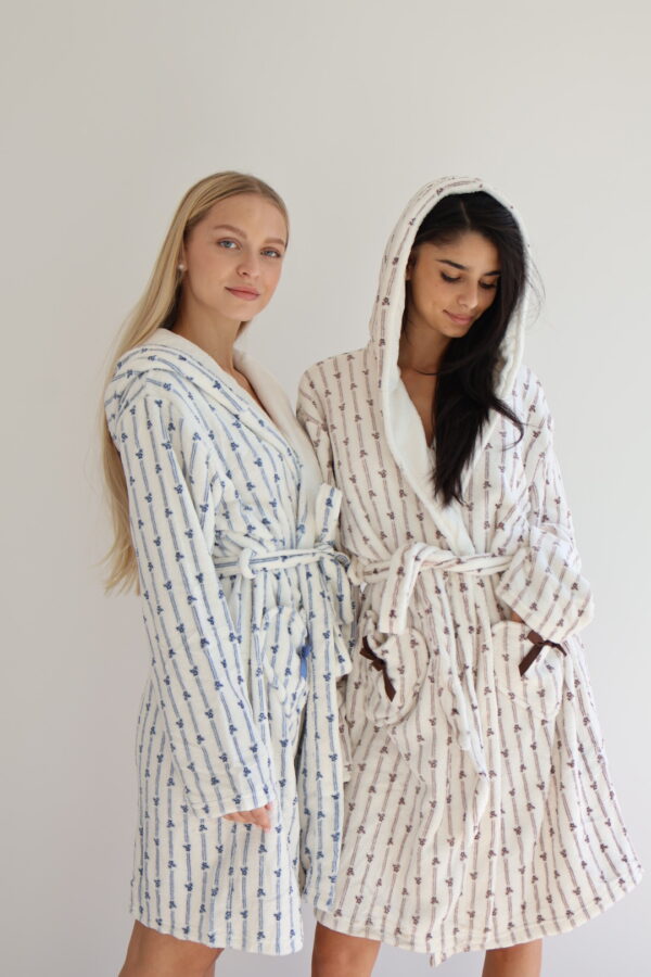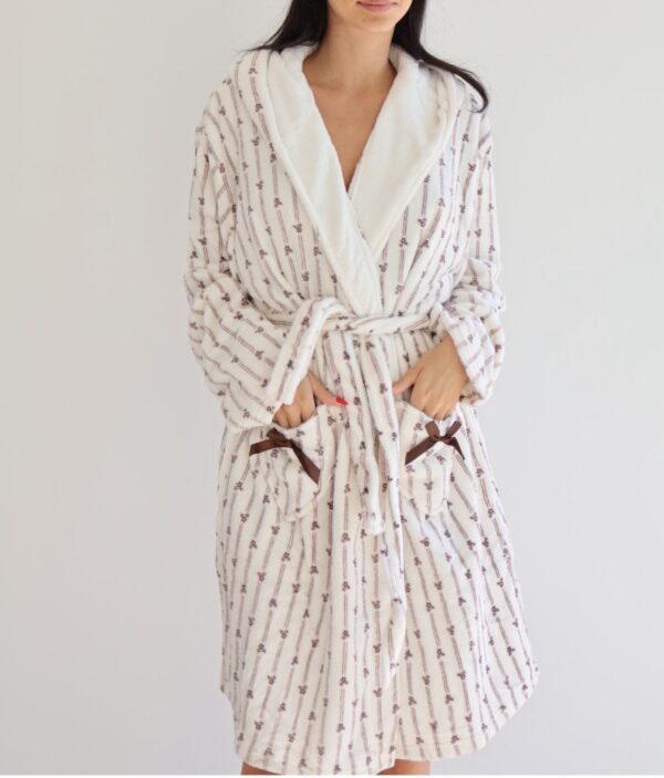 החלוק כולל כיסים בצורת לב , חגורת קשירה במותניים וכובע.