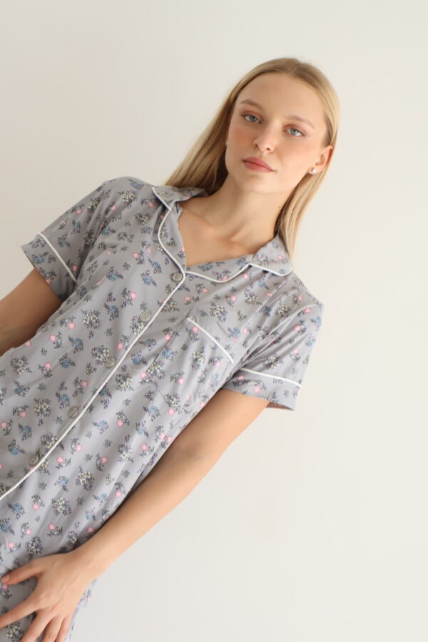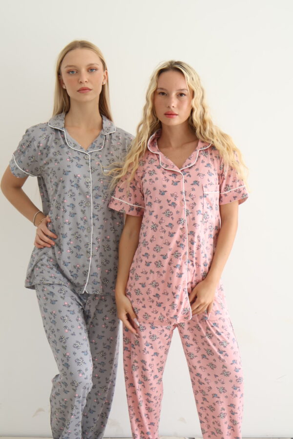 מכופתרת שרוול קצר ,מכנס ארוך עם שרוך וגומי
