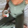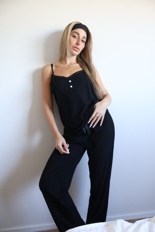 סט גופיה ומכנס עם גימור תחרה . בד סימפוניה ויסקוזה.