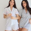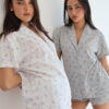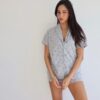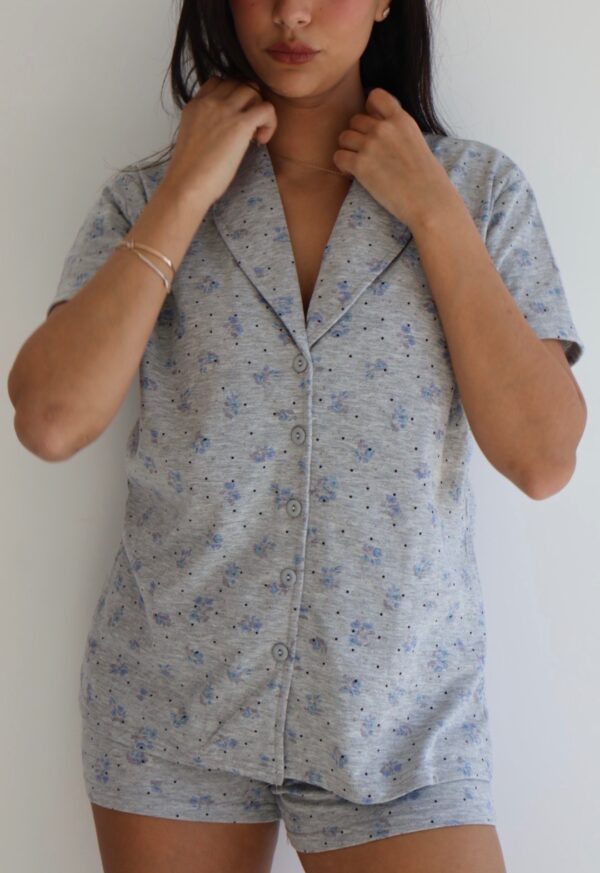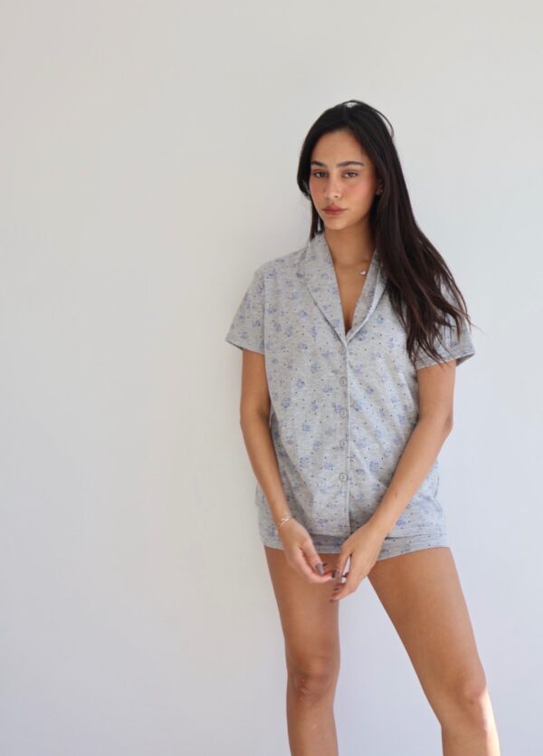 בד ג׳קארד משולב הדפס פרחים. צאוורו עמוק מכנס קצר