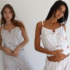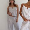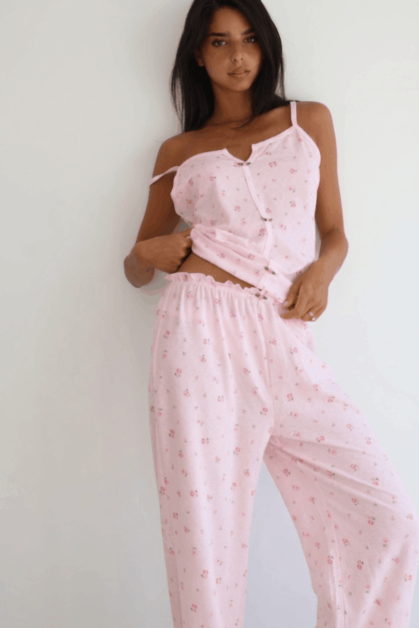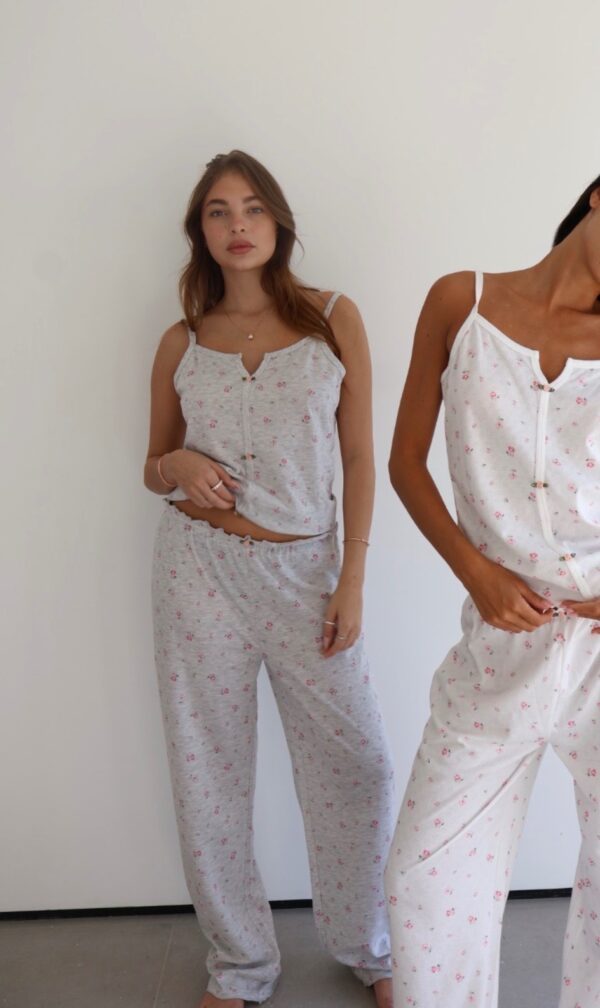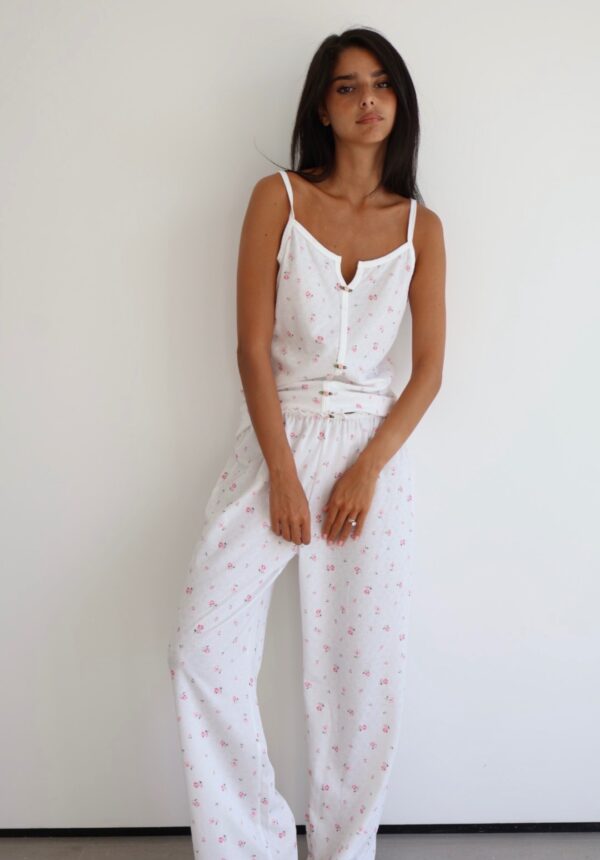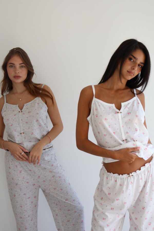 מכנס ארוך וגופייה ,פרחים עדינים דמוי כפתורים. בד ג׳קארד משולב כותנה  רך במיוחד