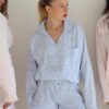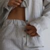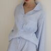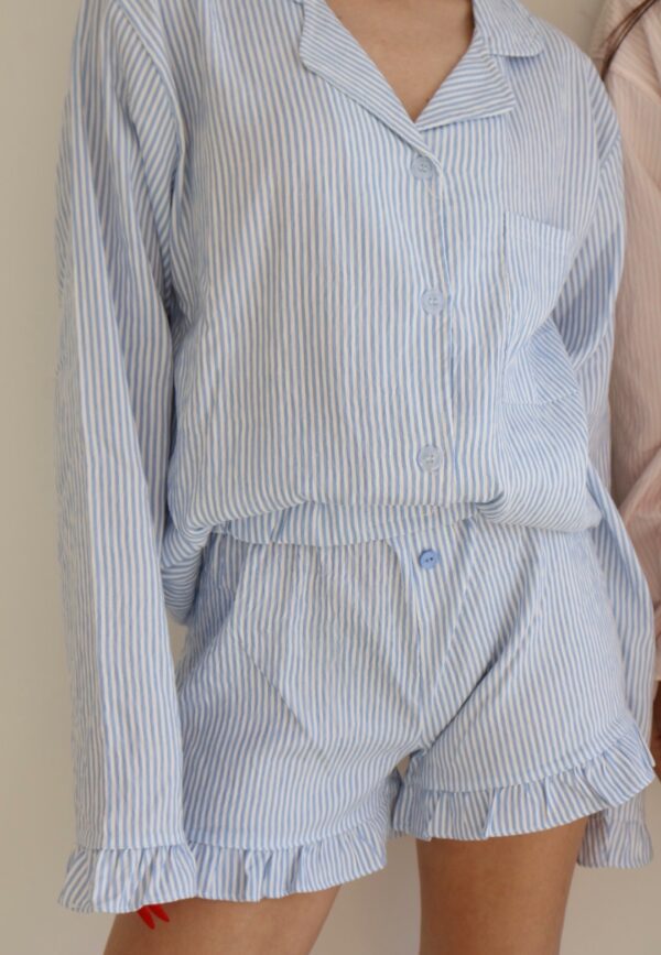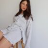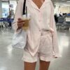 בד דק קליל ונעים. הגזרה החדשה של למבדה שרוול ארוך מכנס קצר מלמלה
