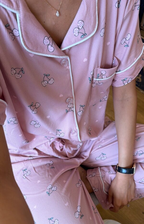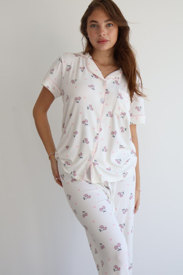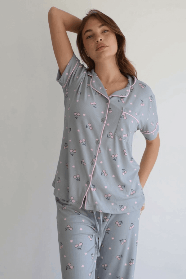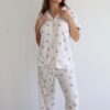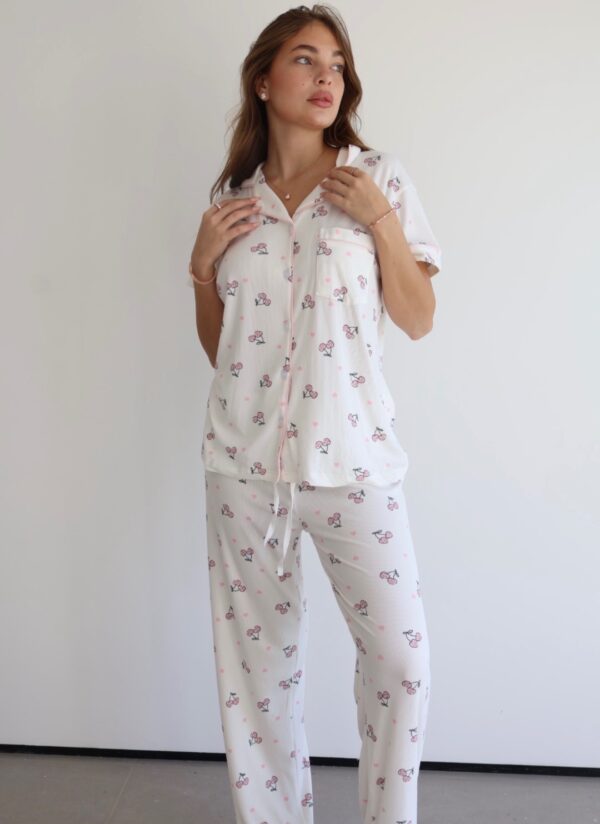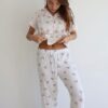 בד ריפ לייקרה  סט מכנס ארוך ומכופתרת קצרה.