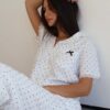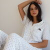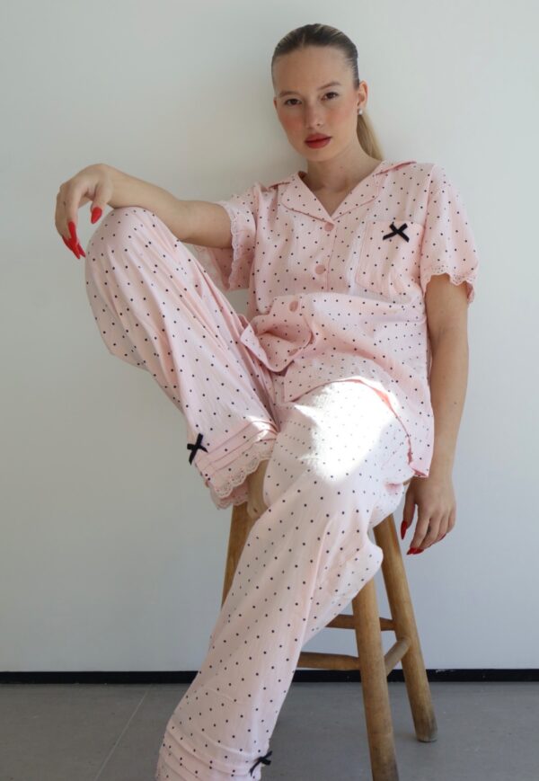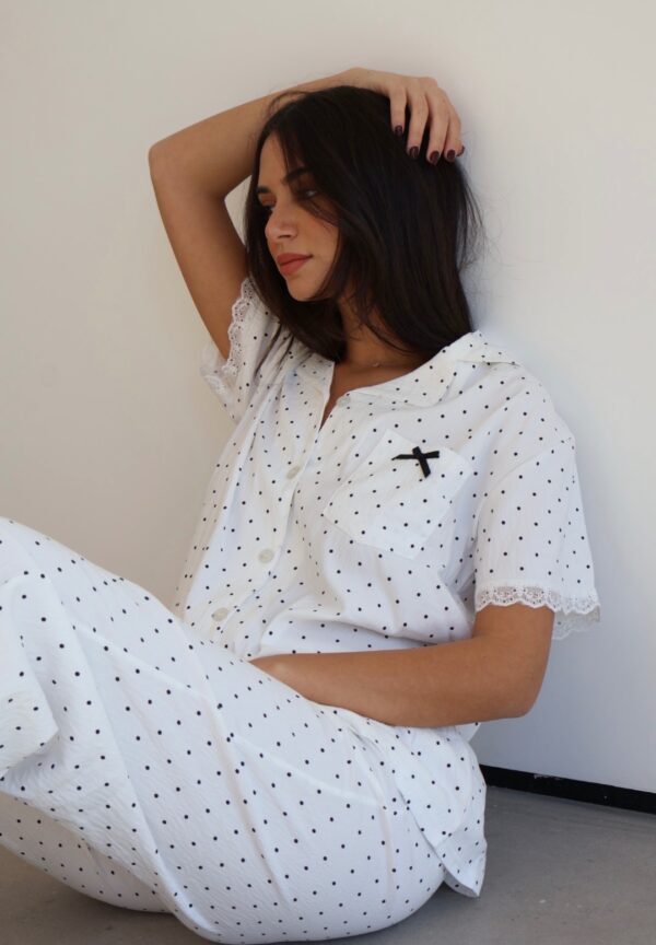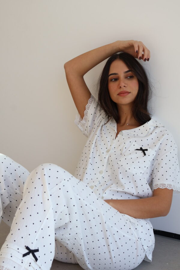 הסט הכי מדוייק,עד הפרטים הקטנים החל מהגימורים ועד לבד הדק שיושב על הגוף הכי כיפי.מכנס ארוך שרוול קצר מכופתרת.