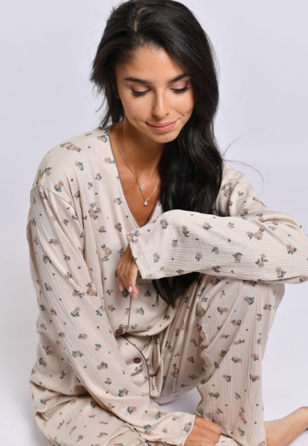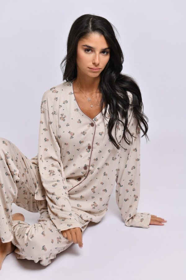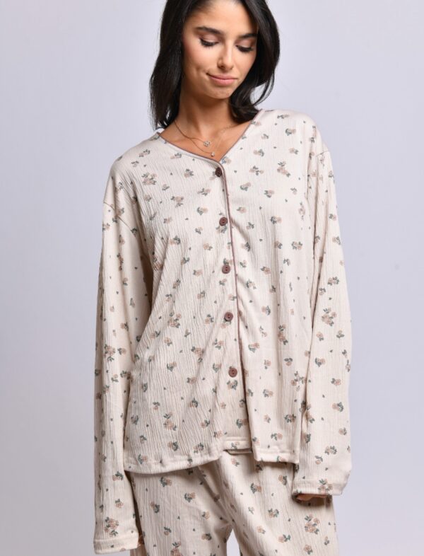 בד דק מכופתרת מכנס ארוך.