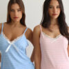 סט גופיה ומכנס קצר ריפ עם גימור תחרה.