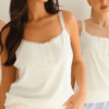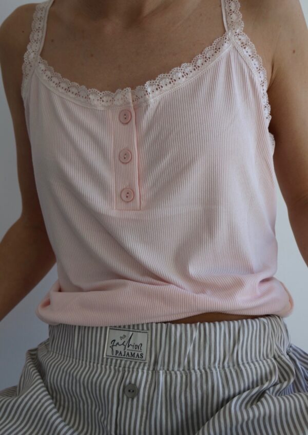 גופיה בשילוב תחרה עם כפתורים, בד רך נמתח ריפ.
