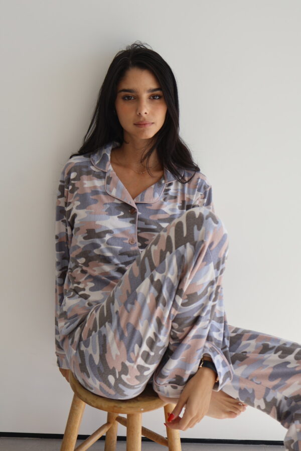 סט מכופתרת ומכנס ארוך ,בד סריג דק חלומי