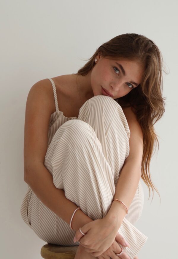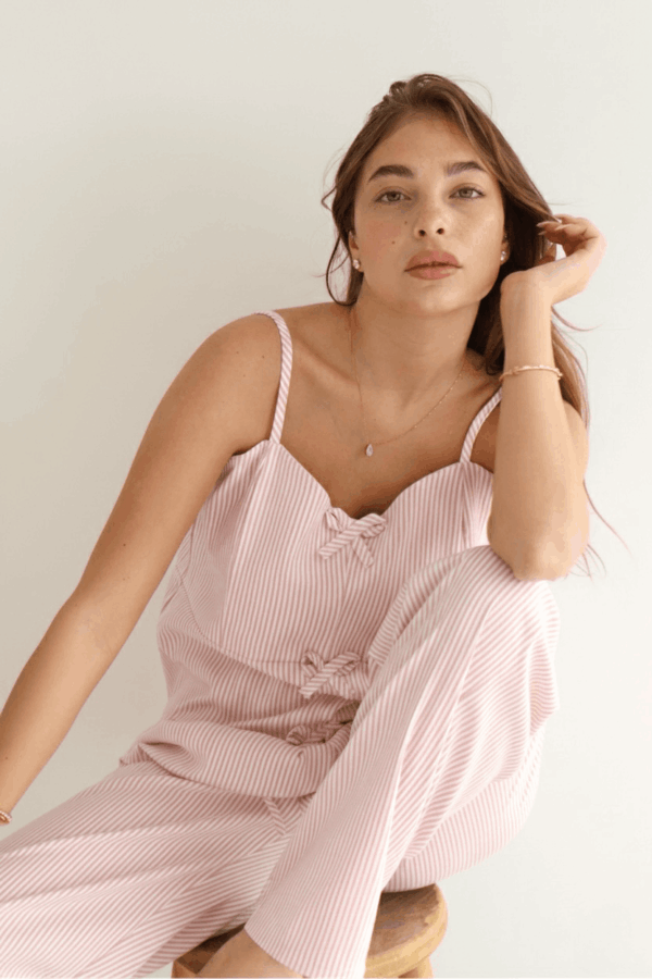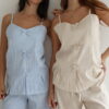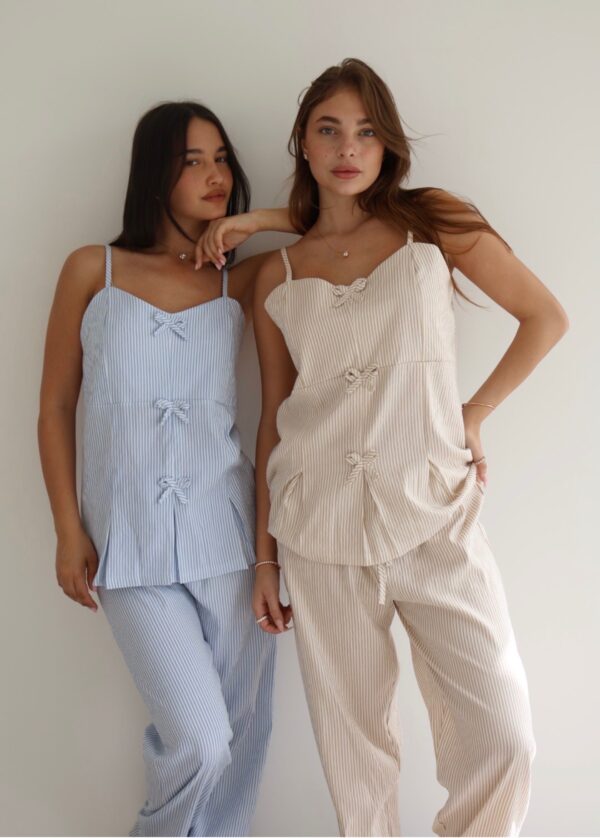 בד דק דמוי טטרה, בגזרה חדשה גופיה, עם פפיונים.